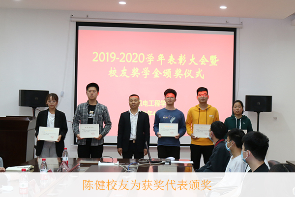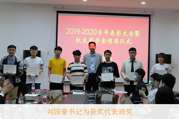 大会上,刘国豪书记首先宣读了我院2020年优秀学生奖学金及各项荣誉称号获得者名单。接着,与会领导、校友王京和陈健为奖学金获奖代表颁奖。然后,获奖代表机制18-3班康峰博同学发言,交流了自己的学习经验,感谢校友的无私奉献,表示要以获奖为新的起点,继续秉承“为之则易,不为则难”的校训,砥砺奋斗,创造更美好的未来。