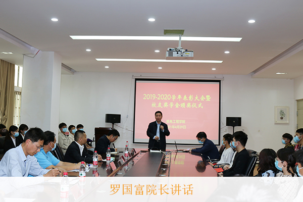 最后,罗国富院长讲话。他向为GG平台 捐资设立校友奖学金的杰出校友表示崇高敬意,向受表彰的同学表示热烈祝贺。他希望同学们要懂得感恩,常怀感恩之心,孝敬父母,尊敬师长,报效祖国,回馈社会,用爱回应一切,宽容他人;要自强不息,在学习中磨练意志,在生活中锤炼品格,听从历史的召唤,不断超越自我,无畏艰难困苦,勇于攀登;要志存高远,勤奋学习,掌握基础知识,筑牢专业功底,利用好学校提供的各种开放共享优质资源,追寻自己的梦想,继续深造。