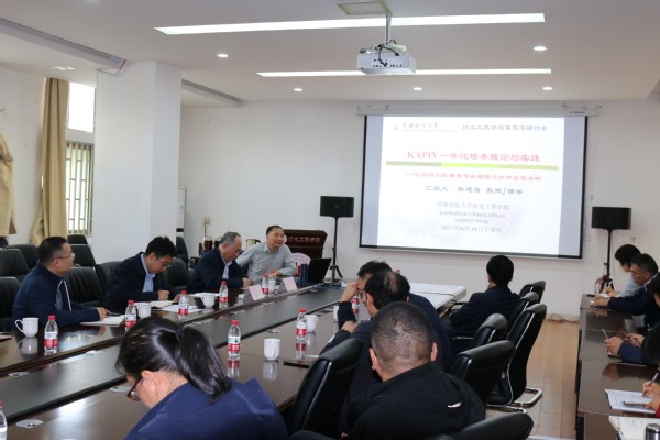 会上,李浩院长首先对韩建海教授的到来表示热烈欢迎,并简要介绍了韩建海教授的个人情况。接着,韩建海教授以“KAPIV一体化培养理论与实践”为题,强调如何加快知识向能力转化,是大学教学研究面临的重大问题,传统课堂教学和工程实践训练过程相互分离,流水线式教学模式很难打通知识与能力之间的界面障碍,不利于促进知识向能力的转化。为此,提出了将知识(Knowledge)、能力(Ability)、实践(Practice)、创新(Innovation)、品行(Virtue)一体化培养(简称KAPIV)教改理念,以体现理论与实践的融合,各种能力之间的叠加,最终加快知识向能力的转化。并以河南科技大学机械类专业课程设计为案例,具体介绍了KAPIV一体化培养的教改理念、实施方法和实施效果。