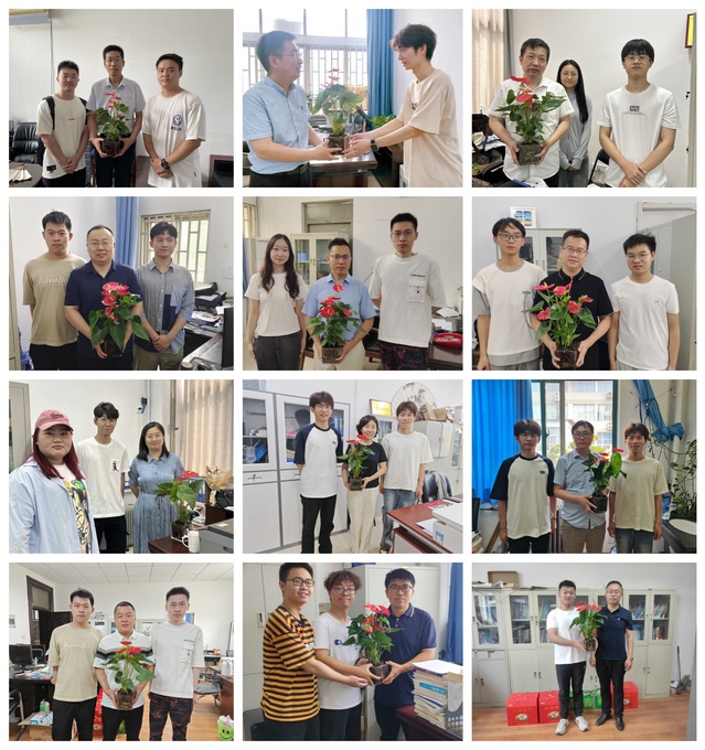 活动中,毕业生们将精心准备的绿植送到老师的手中,深情表达了对老师辛苦培育的感谢之情及对老师的美好祝福,老师也表达了对学生的感谢及对学生未来的祝福和期盼。不舍之情溢于言表,学生表示深刻认识到了“饮其流者怀其源,学其成时念吾师”的真正含义。老师在与学生亲切交谈后,以合影方式记录下这一珍贵的瞬间。