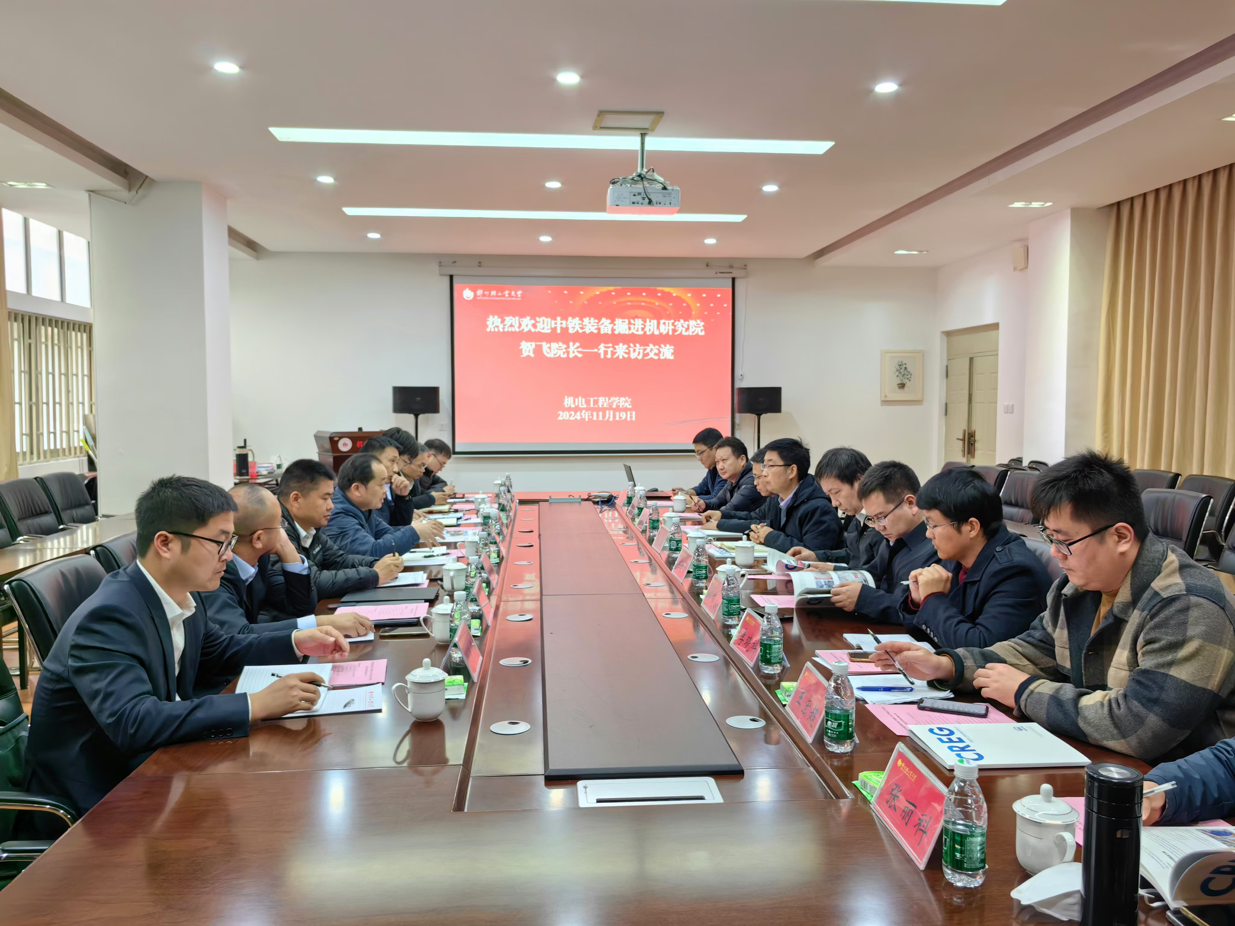 近日,中铁工程装备集团有限公司掘进机研究院院长贺飞一行到GG游戏试玩平台 走访交流。GG平台 行政领导班子及相关学科骨干教师参加了交流会,院长李浩主持会议。