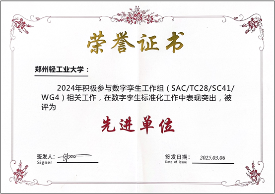 郑州轻工业大学工业数字孪生团队是国内最早从事数字孪生理论与技术研究的团队之一,团队是“数字孪生与智能制造服务学术会议”发起单位,主办了第二届学术会议(2018年);是中国图学学会数字孪生专业委员会创始单位之一(团队成员担任数字孪生专委会副主任兼秘书长、副秘书长、委员等),创建了河南省复杂机械系统数字孪生工程研究中心。团队成员荣获国家级人才、河南省优秀青年基金、中原英才青年拔尖人才、河南省高校科技创新人才等,数字孪生研究成果荣获国家科技进步奖二等奖和河南省技术发明奖一等奖。团队通过积极制订数字孪生标准,确保数字孪生技术的互操作性和一致性,为数字孪生技术的应用提供基础和指导,促进智能制造技术创新与产业发展。
