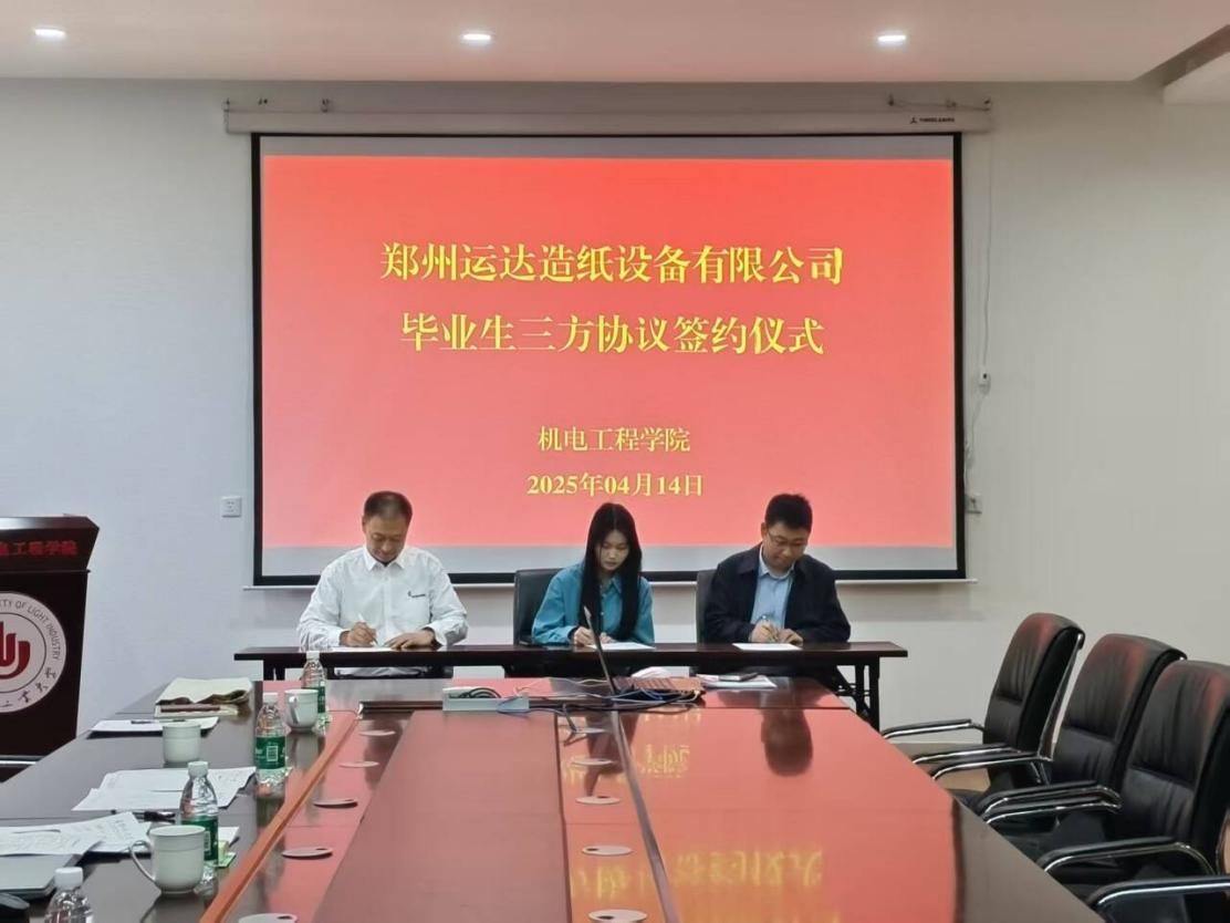 交流会第二阶段,许超峰、李浩和毕业生代表进行了郑州运达造纸设备有限公司毕业生三方协议签约。公司人力资源部李果部长就公司招聘政策做了专题宣讲,并与参会毕业生进行现场答疑互动。
