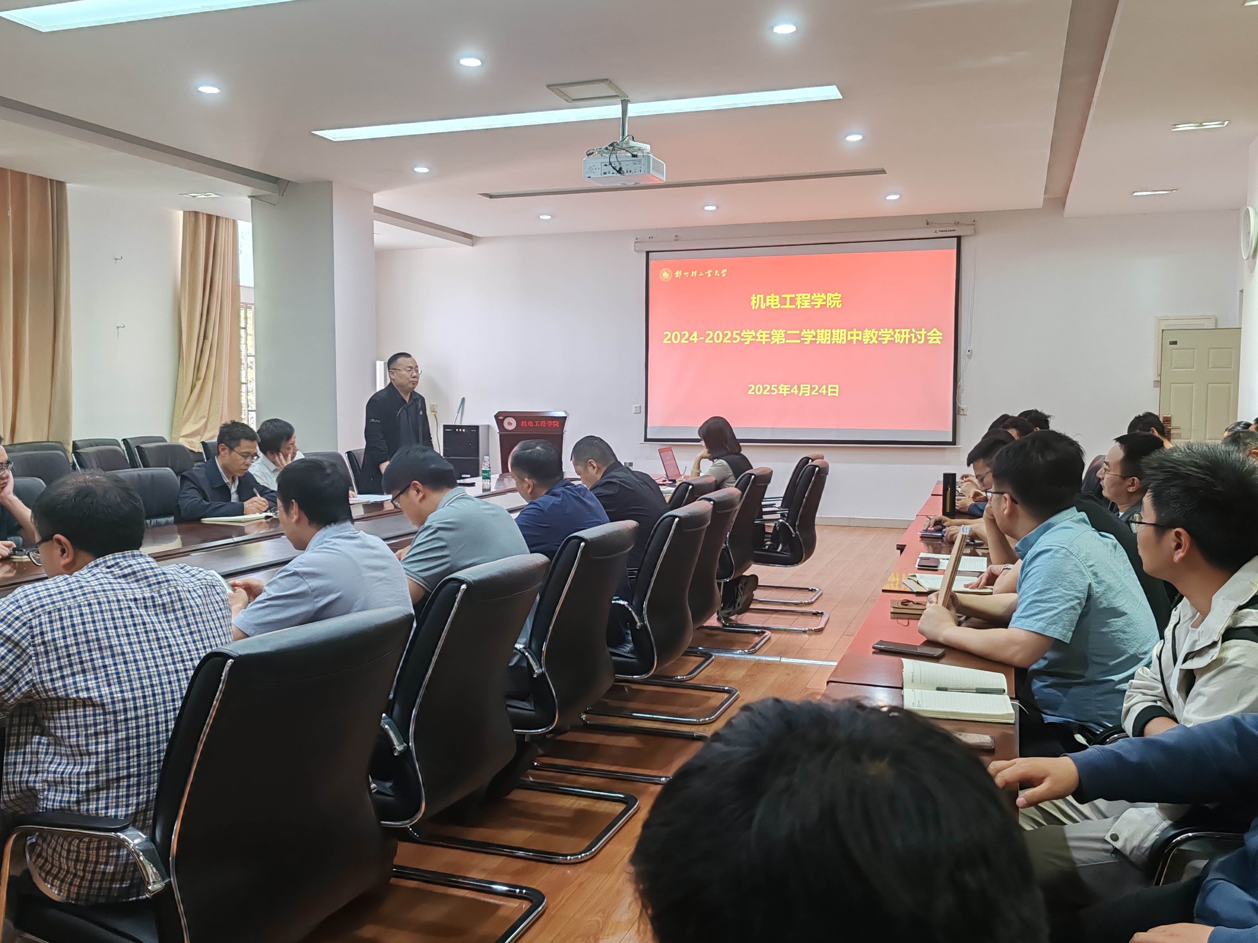 GG游戏试玩平台 于2025年4月24日下午在西三楼215会议室召开期中教学检查教师座谈会,副院长侯俊剑主持会议,GG平台 领导班子、教学督导组、系(中心)主任及教师代表共同参会。会议围绕推进教学管理制度规范化建设,系统梳理各专业人才培养方案修订进展与实施难点,重点研讨教学团队建设与人才培养质量提升路径,旨在通过制度优化和教学改革全面提高教育教学水平。