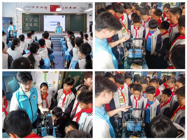 此次活动,通过专业知识讲解、实物展示和互动体验的形式开展。活动伊始,刘晓丽老师以通俗易懂的语言,从日常食用的饺子、汽车零部件的精密制造等,一个个生动的例子,让学生们直观感受到数控机床与生活的紧密联系,让学生了解了数控机床的原理、发展史,并结合3D 打印的基本原理,展示了 3D 打印在各个领域的广泛应用,让学生们深刻感受到 “小小的机床” 如何创造出 “大大的世界”。在讲解过程中,正在工作的 3D 打印机成为了全场焦点,随着喷头的移动,一层层材料逐渐堆积,一个精致的模型在孩子们眼前慢慢成型。这种直观的展示方式,让学生们亲眼目睹了 3D 打印的神奇过程,惊叹声此起彼伏。他们纷纷围在3D打印机旁,目不转睛地观察着,眼中充满了对科技的好奇与向往,感叹到:“原来 3D 打印这么有趣,我以后也想当一名科学家,发明更多好玩的东西!”