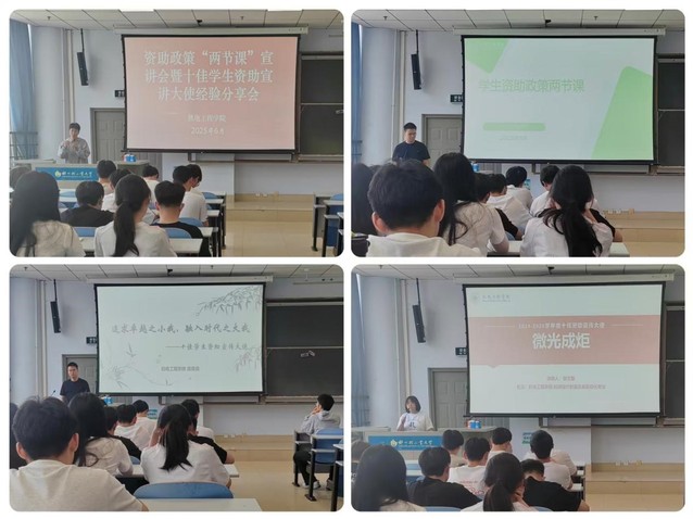 首先,“十佳学生资助宣传大使”侯青森全面详细地介绍了国家资助相关政策,重点阐述了我校“奖、助、贷、补、减”及“新生绿色通道”六位一体的学生资助体系,详细解读了各项资助政策的申请条件、申请程序、注意事项、认定标准、评议制度等各方面事宜。接着,侯青森以“追求卓越之小我、融入时代之大我"为主题讲解,通过个人成就与公益行动,诠释新时代青年的责任与使命,充分展现资助育人体系落地成效成果。张文慧以“微光成炬”为主题讲解,立足成长与政策宣传,助力学生通过资助体系实现梦想。