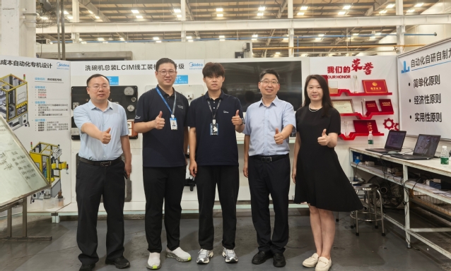 GG平台 一行走访看望了在美的厨热洗碗机工厂工作的优秀校友,详细了解在岗校友的工作概况,认真听取校友们针对学校教育教学改革、创新创业能力提升、实习实训拓展和校企合作深化等方面的意见建议。交流过程中,得知2024届校招毕业生韩衍星同学入职仅一年被评为公司2024年度绩效S等级(第一名)、2025年度半年绩效S等级(第一名)的优异成绩时,李浩对在美的高级管理岗位和技术骨干岗位上的优秀校友们表示高度赞赏,并勉励他们要传承母校优良传统,发扬奋斗精神,积极为美的事业发展奉献机电人的智慧和力量。