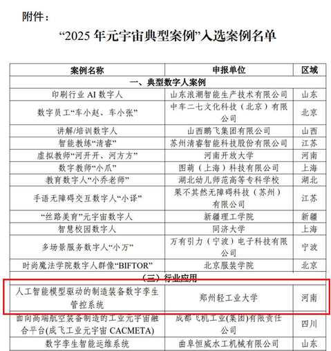 近年来,我校积极响应国家《元宇宙产业创新发展三年行动计划(2023—2025年)》决策部署,持续深化新兴技术与未来产业的科技创新布局。此次案例成功入选是我校贯彻落实国家培育未来产业决策部署的重要实践成果,在推动制造业数字化转型中发挥了显著的示范引领作用。